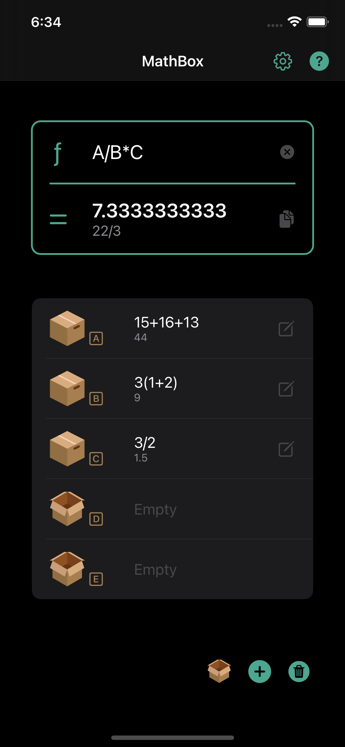 Boxes behave like variables (A, B, C, D, E, ...) that you can reuse in your calculations.